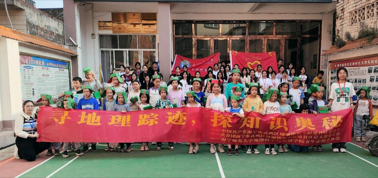 为发挥我院学生专业优势,提高学生社会服务能力,2024年3月23日下午,suncitygroup太阳成集团青年志愿者协会于南宁市武鸣区城厢镇和平解放社区开展主题为“寻地理踪迹,探知识奥秘”的“社区育苗”活动。