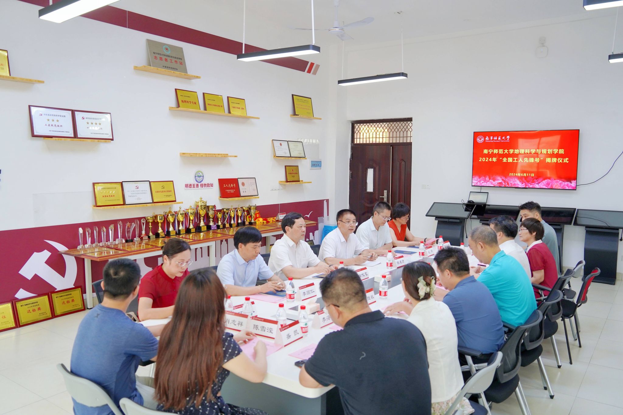 6月11日,学校在武鸣校区地源楼为suncitygroup太阳成集团荣获的2024年“全国工人先锋号”举行揭牌仪式。学校党委副书记、工会主席侯代忠,校工会、组织部、宣传部等部门负责人,suncitygroup太阳成集团领导班子成员及教师代表,地理与海洋研究院和环境与生命科学学院代表参加活动。