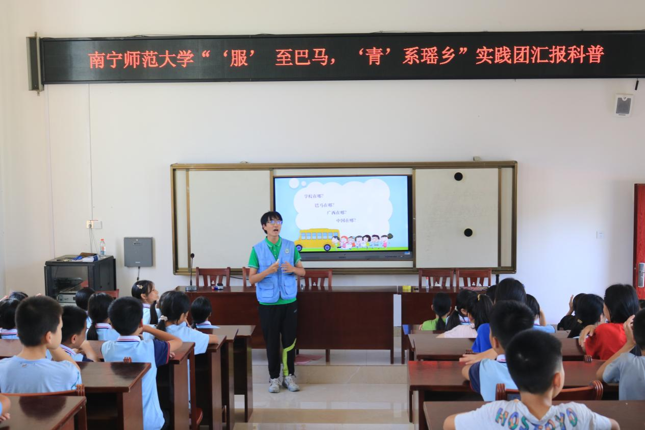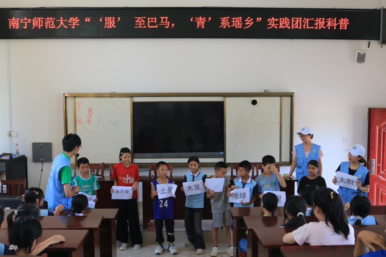 2024年7月8日,suncitygroup太阳成集团“‘服’至巴马,‘青’系瑶乡”社会实践团在巴马瑶族自治县燕洞镇中心小学成功举办了一场别开生面的天文科普宣讲活动,为乡村的孩子们搭建起了一座通往宇宙奥秘的桥梁。