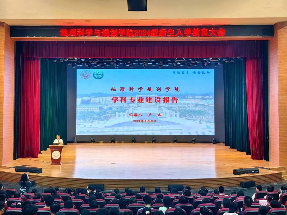 学院院长卢远作学院专业发展介绍报告。他主要围绕地理学科专业发展趋势、课程建设、人才培养现状、专业改革思路与成效、博士点建设等方面内容介绍了学院发展建设情况。他勉励全体新生要勇于探索、敢于创新,充分运用好学院优质资源和良好环境,努力学习专业知识,提升各项综合素养,以专业能力回报社会发展。