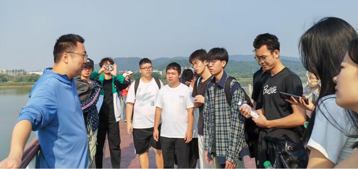 午后,我们一行人抵达了橘子洲头西侧风景秀丽的岳麓山脚下,随后攀至其巅,居高临下地俯瞰着长沙城,城市的繁华盛景宛如一幅画卷,尽收眼底。遥望之处,湘江宛如一条闪烁着银光的缎带,曲折蜿蜒,缓缓流向远方。在老师们的讲解中,我们得知岳麓山的地质构成主要以耐风化的泥盆系砂岩为主,褶皱和断裂带都比较发育。老师们不仅深入浅出地为我们剖析了这些岩石所属的地质年代,还亲自指导我们如何辨别向斜与背斜的构造特征。随着我们沿山路徒步下行,对沿途所见的坡地地貌进行了细致的分析与讨论。依据岳麓山所处的地带性特征、独特的气候条件、丰富的植被覆盖以及岩石的产状,我们共同探讨了这些地貌是属于滑坡还是崩塌。老师们更是循循善诱,鼓励我们自主分析滑坡、崩塌与泥石流这三种地质现象之间的异同,培养我们独立判断此类地貌类型的能力。
