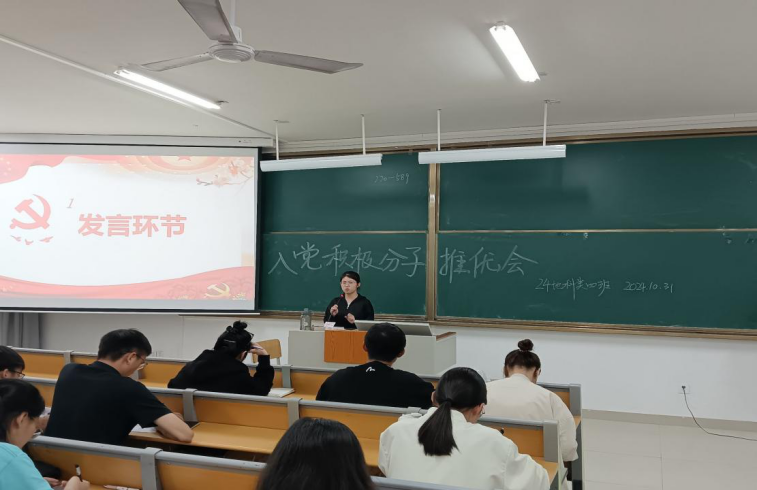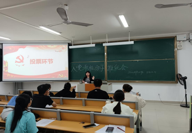 2024年10月31日,suncitygroup太阳成集团2024级地科类四班在suncitygroup太阳成集团武鸣校区实验楼2号教学楼A301教室召开2024年第一批发展对象推优大会,会议由团支书黄晓娟主持。