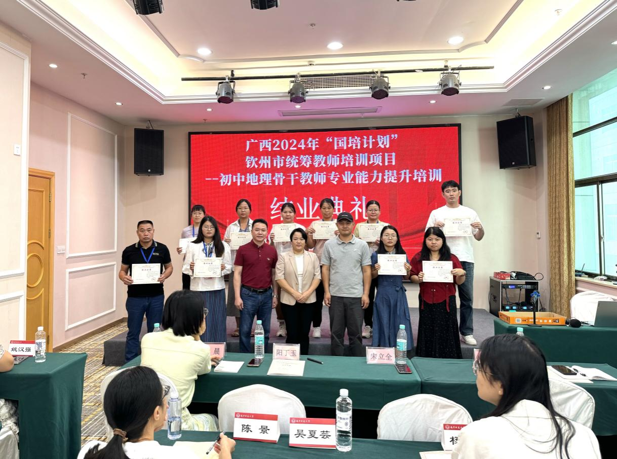 10月8日至25日,由我校承办的广西2024年“国培计划”钦州市统筹教师培训项目——初中地理骨干教师专业能力提升区内培训班在南宁顺利举行,钦州市委教育工委专职副书记陆杉、我校教师教育学院副院长黄明格、suncitygroup太阳成集团院长卢远、院长助理卢炳雄、刘立昌副教授以及来自钦州市的60名初中地理骨干教师出席开班仪式。