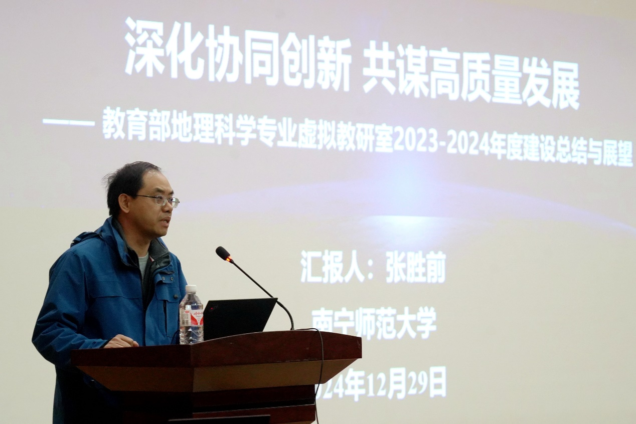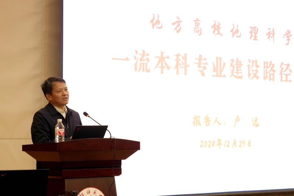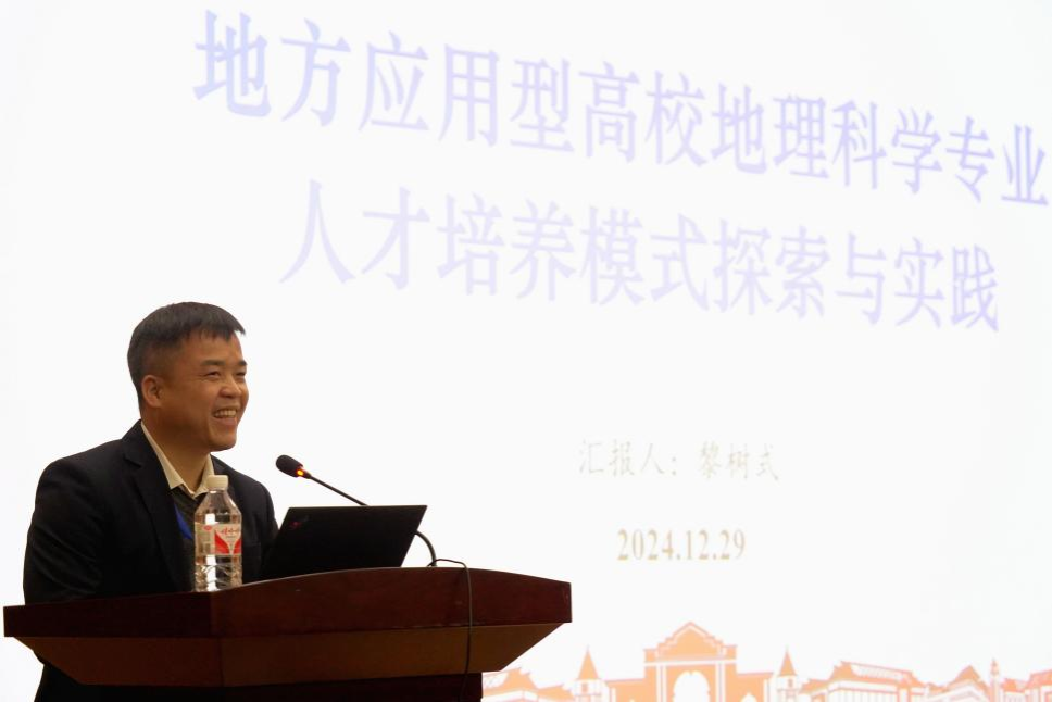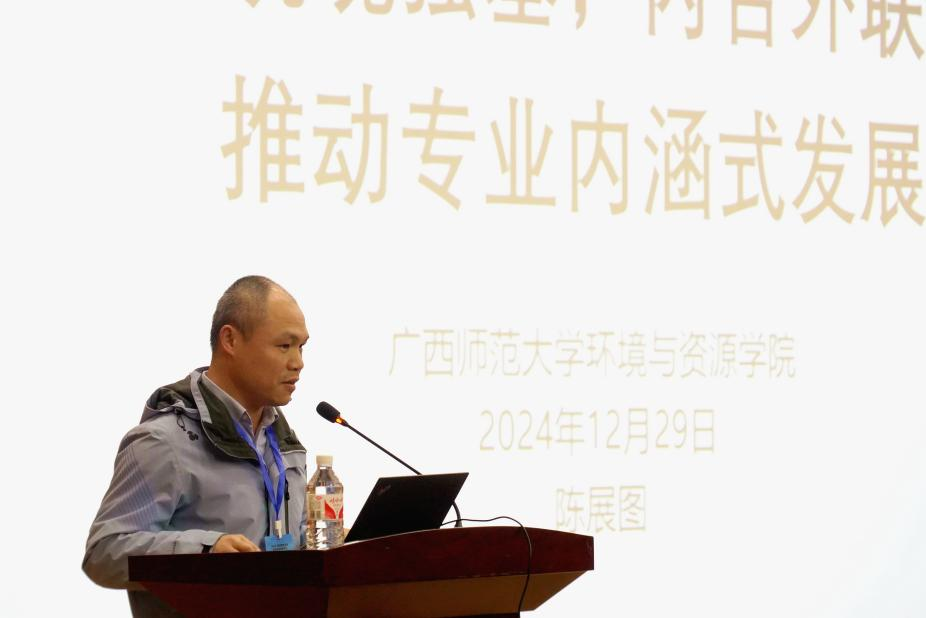 开幕式结束以后,与会专家就专业建设与人才培养进行了深入的交流。会议前半场由我校地理与海洋研究院院长胡宝清主持,桂林理工大学副校长周国清、南方测绘集团副总裁郭宝宇、北部湾大学资源与环境学院院长黎树式分别作了题为“西部高校测绘地理信息类专业‘三化一新’培养模式探索与实践”“元宇宙技术赋能测绘地理信息+人才高质量培养”、“地方应用型院校地理科学专业人才培养模式探索与实践”的学术报告,他们分享了各学校的创新教学理念与成果,共同助力地理科学类教育事业的发展。后半场由黎树式教授主持,我校suncitygroup太阳成集团院长卢远、广西师范大学环境与资源学院副院长陈展图、我校教育评价与教师发展中心副主任张胜前分别作了题为“地方高校地理科学类一流专业建设路径思考与探索”“筑魂强基,内合外联,推动专业内涵式发展”“协同创新教研实现多赢发展——教育部地理科学专业虚拟教研室建设总结与展望”的学术报告,他们就高校地理科学类专业建设和前沿动态发展各抒己见,共同探讨地理教育的新发展、新理念。