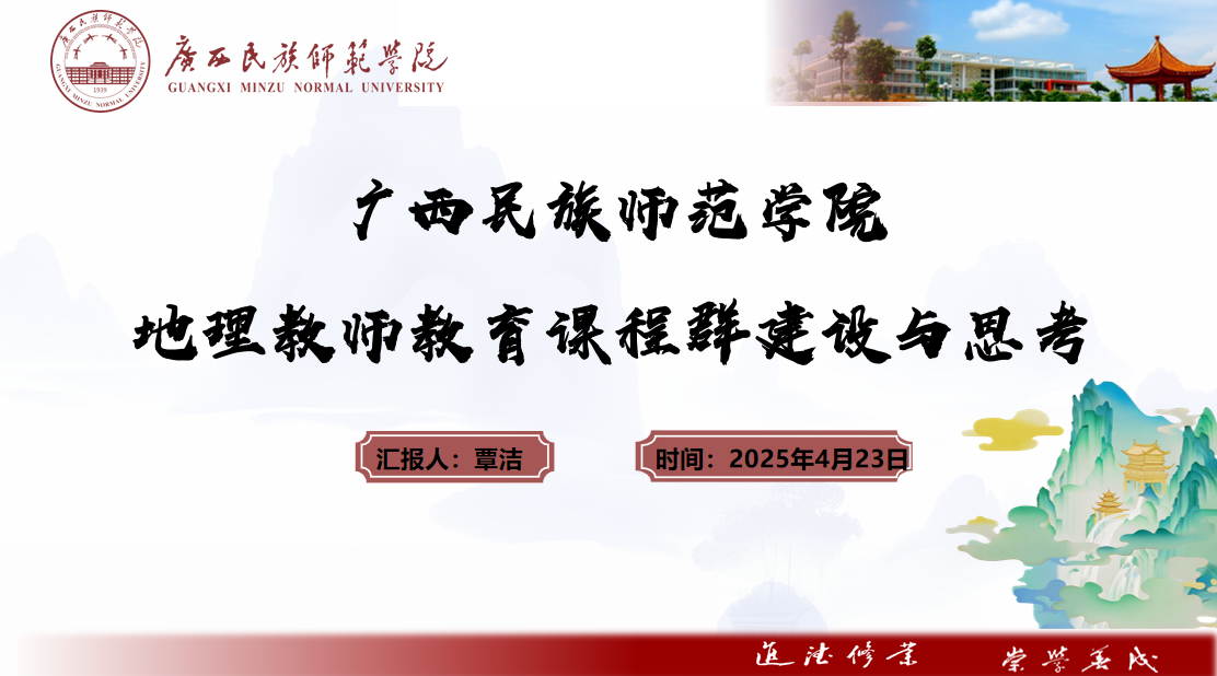 广西民族师范学院覃洁老师以“地理教师教育课程群建设与思考”为主题,介绍了广西民族师范学院地理教师教育课程群的开设情况,然后以《地理课程与教学论》课程为例,从课程性质、课程目标、课程内容、课程实施、课程评价等几个方面介绍了该课程的建设成效。覃洁老师还详细介绍了教育见习、教育实习、教育研习的具体实施过程,通过多种教学方式提升学生的教学技能,取得较好效果。