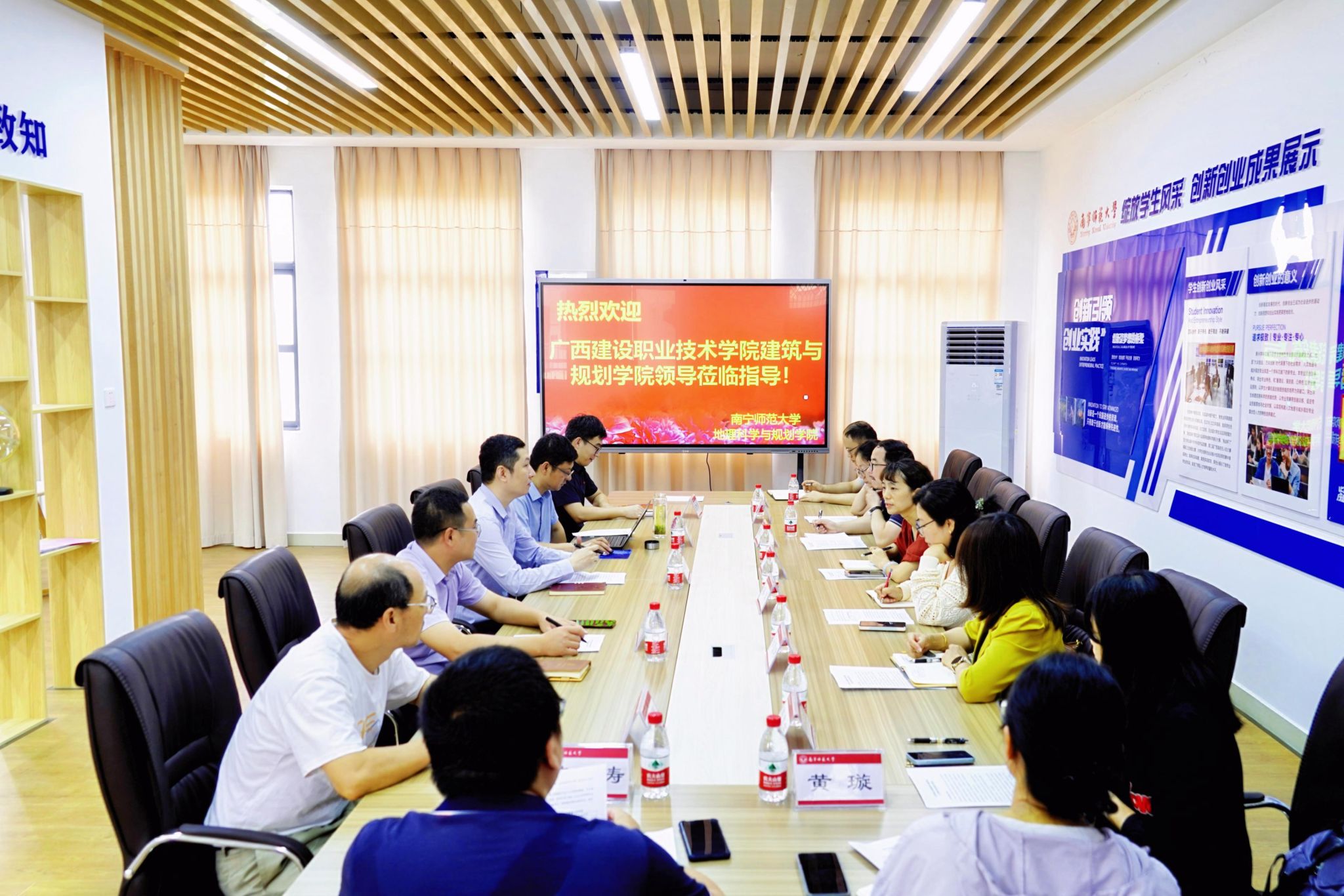 4月30日,广西建设职业技术学院建筑与规划学院副院长肖剑一行9人到suncitygroup太阳成集团进行调研交流。学院罗国玮副院长及人文地理与城乡规划系的教师代表热情接待肖剑一行。