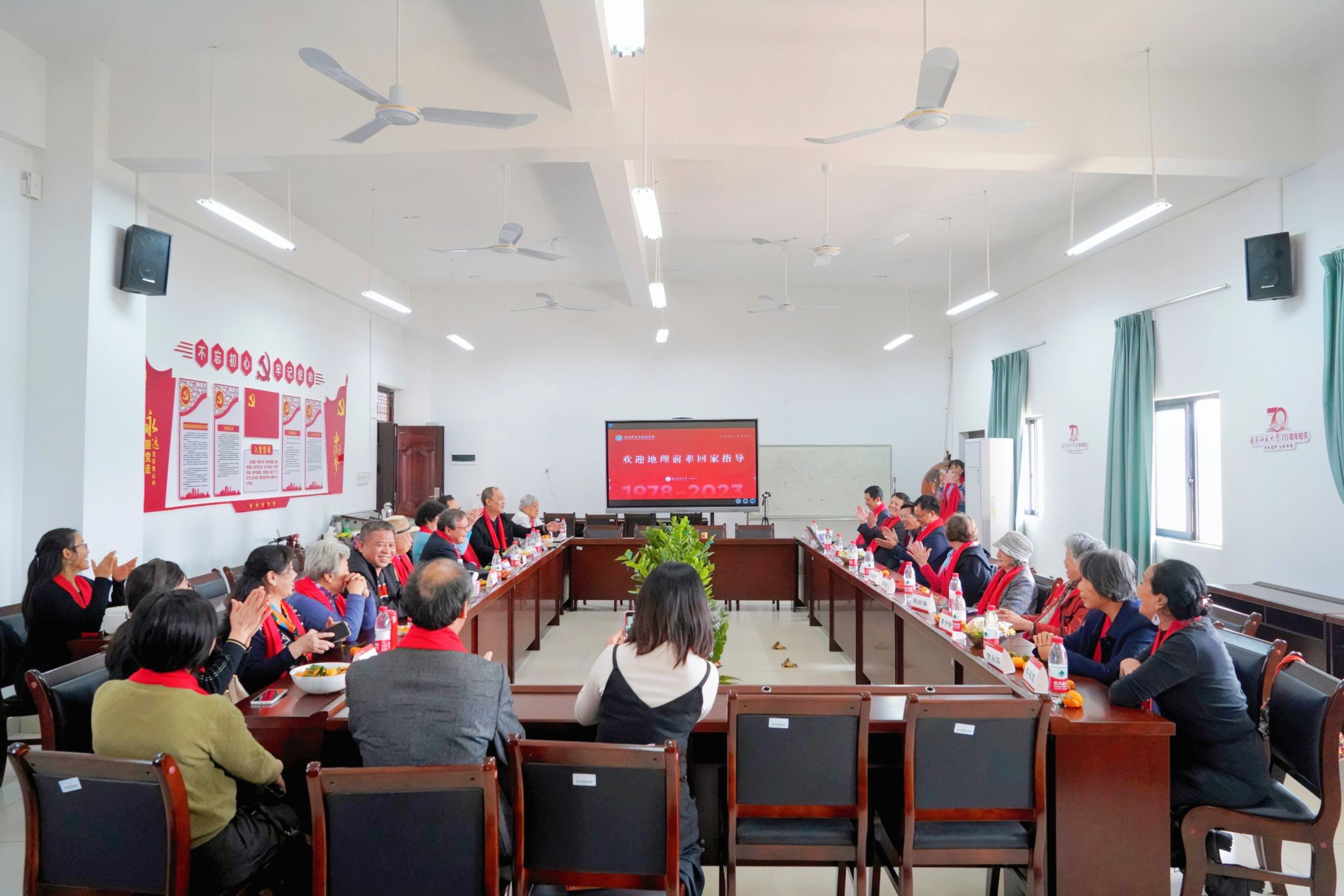 周山、黄建德、杨水云、胡衡生、余承惠、朱文一等退休教师分别发表感言,回忆了学院地理学科创建发展的历程,满怀深情地畅谈自我与学院学科建设共奋斗、同发展的点点滴滴,为如今学校和学院发展取得的成绩感到由衷高兴。