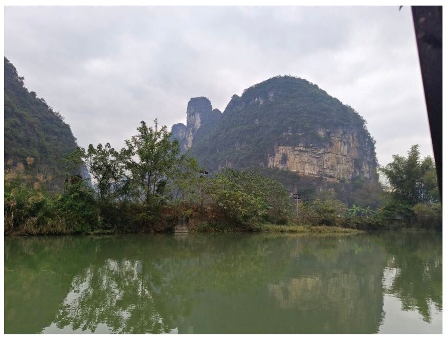 明仕田园的最佳游览方式就是乘坐竹排游明仕河,在这里,我们可以忘记时间的流逝,犹如进入无人之境,将所有风光尽收眼底。同学们乘坐竹筏,在这过程中,阿哥划过碧绿如画、清澈见底的河水,阿姐唱着淳朴婉转的山歌,大家观察着典型的喀斯特地貌,看到因形状得名的蜗牛山、著名的威武将军山、奇特的万乳崖等等。
