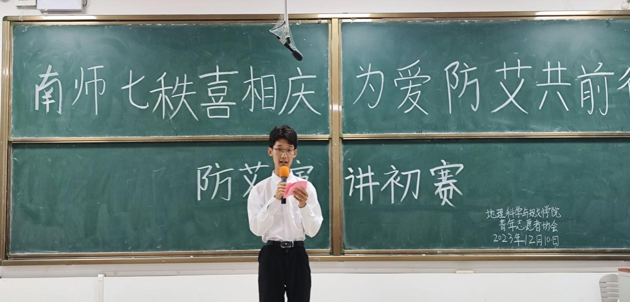 为加强预防艾滋病宣传教育,进一步提高学院学生艾滋病防御知识的知晓率,倡导健康文明的生活方式,提高学院学生自我保护意识,suncitygroup太阳成集团青年志愿者协会于2023年12月10日在suncitygroup太阳成集团武鸣校区二号教学楼109教室开展“南师七秩喜相迎,为爱防艾共前行”防艾演讲初赛活动。