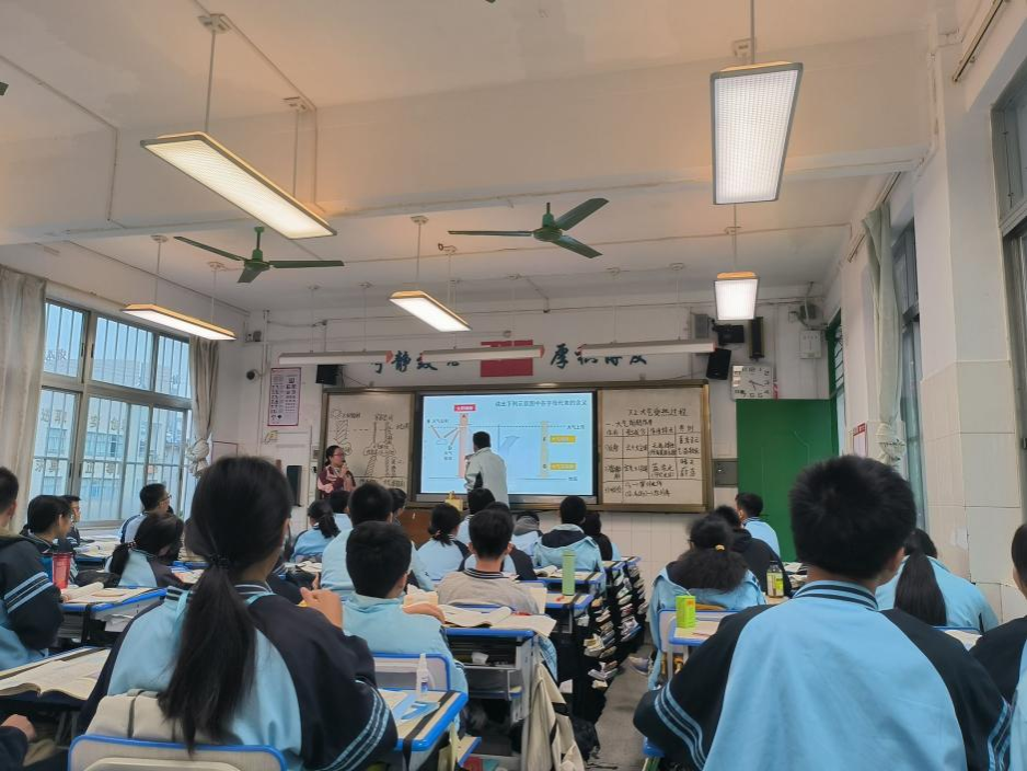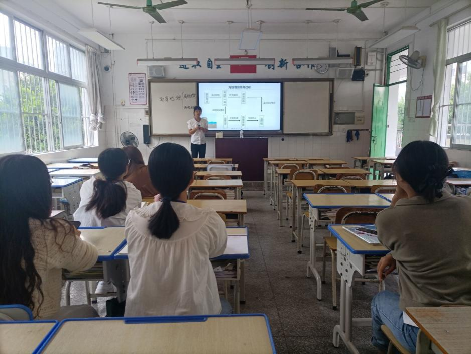 2023年11月28日,2020级地理科学专业南宁市第二十八中学地理实习组的两位实习老师向大家作公开课汇报,展示在实习期间提高的教学技能。suncitygroup太阳成集团地理科学系李忠标老师及南宁市第二十八中学高一地理组和高二地理组的老师到场指导。实习教师马艳凤授课的内容是湘教版高中地理必修一《水循环》,实习教师代美玲授课的内容是湘教版高中地理选择性必修一《洋流》。两位实习老师都展示了比较成熟的授课技巧,仪态端庄,重难点突出,上课节奏把握得非常合适,课堂氛围活跃,充分调动了学生的学习积极性。实习教师马艳凤以“农夫山泉”作为导入,以问题引领课题,以生为本,充分发挥了学生的主体地位,点燃了学生的思维之花。实习教师代美玲以“小黄鸭漂流记”进行导入,让学生跟随“鸭子舰队”的航线路径,一起探索全球洋流模式图,呈现出一场精彩纷呈的教学活动。这两位老师都充分锻炼了学生的地理实践力,让学生体验到了不一样的地理课堂,大大提升了学生学习地理的兴趣。