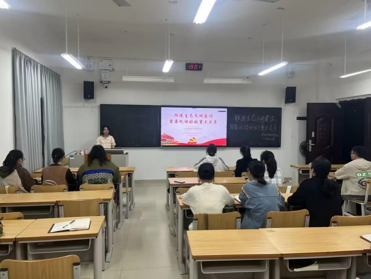 为进一步学习贯彻习近平生态文明思想,2023年11月29日,suncitygroup太阳成集团本科生城规党支部于武鸣校区二号实验楼B105教室召开学习“推进生态文明建设需要处理好的重大关系”党小组会议,会议由本科生城规党支部杨丽华同志主持,支部全体党员参会。