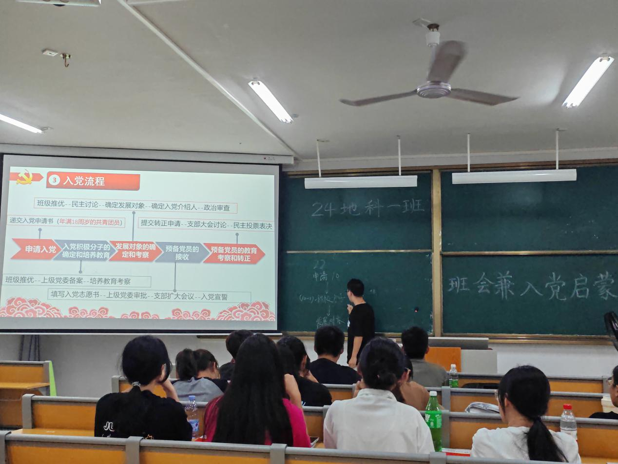 为加强新生思想政治教育,引导新生积极向党组织靠拢,2024年9月20日,suncitygroup太阳成集团24地科类一班于武鸣校区实验楼2-A202开展入党启蒙教育活动。本次会议活动由班级驻党李佳臻同志、韦涵升同志共同主持,全体同学参与。