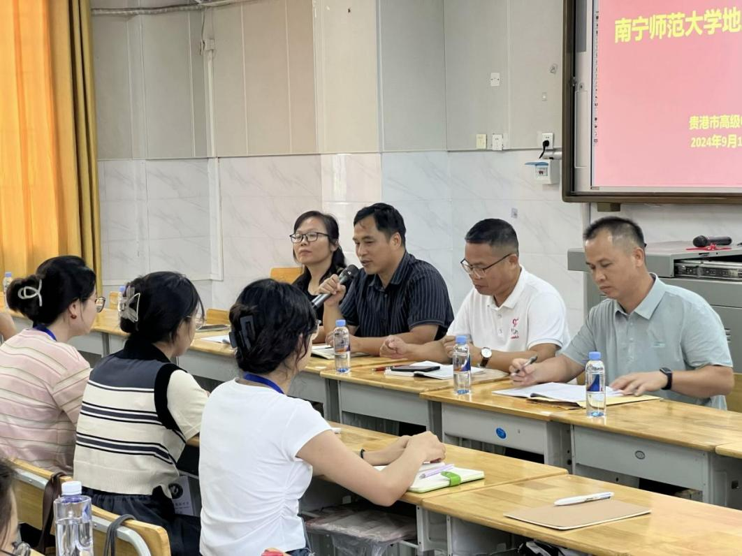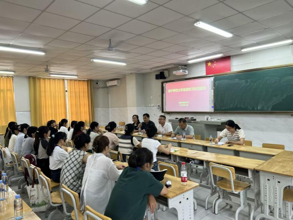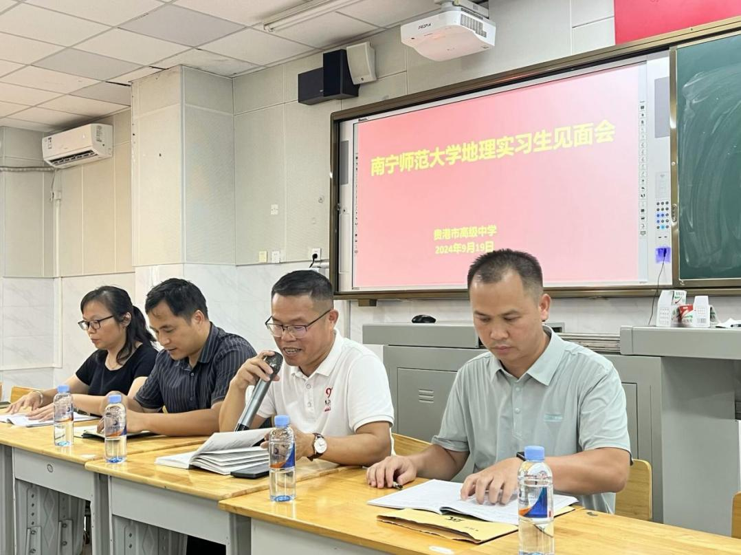 19日下午,贵港市高级中学在启德楼3栋合班教室开展地理实习教师见面会。黄江副校长首先欢迎suncitygroup太阳成集团师生一行的到来。他介绍了贵港市高级中学的办学质量、教学条件及办学业绩等基本情况,并对我校的地理教师人才培养给予了高度评价。同时也着重强调了实习期间的各项纪律、安全等要求等内容。