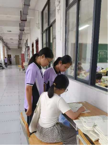 (实习老师韦莹莹、李珍在听高一教师覃淑鑫老师上《太阳对地球的影响》)