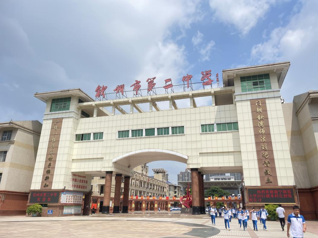 广西钦州市第二中学坐落于广西壮族自治区钦州市,创办于1974年,是广西示范高中、广州军区国防生生源基地、全国模范职工之家、全国体育运动先进学校、全国依法治校示范学校,是中国科技大学等国家重点高校的生源基地。该校拥有一流的教师队伍,教育教学成绩一直在广西一流中学的前列。