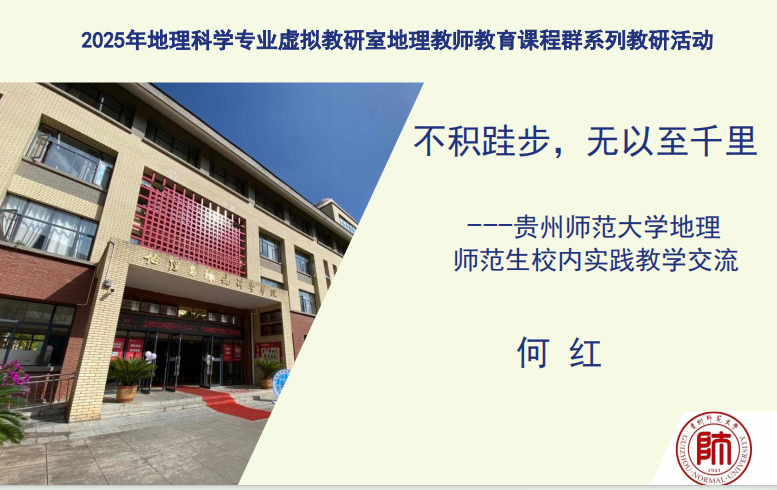 贵州师范大学何红老师以“地理师范生校内实践教学探索”为题,从学院历史、专业设置、实践教学目标与方案设计等方面展开,详细介绍了贵州师范大学如何通过校内实训、教育见习、教育实习等环节,提升师范生的教学实践能力。她还分享了该校在信息化平台使用、实践大课程体系的构建、优秀指导团队建设、分组分模块训练、多元化考核评价等方面的实践经验,提出了未来在师范生培养、课程资源开发、教育科学研究等方面的展望。何红老师的报告全面呈现贵州师范大学地理师范生校内实践教学创新举措,从多环节、多方面分享实践经验,为地理师范生培养提供可借鉴范式与发展思路。