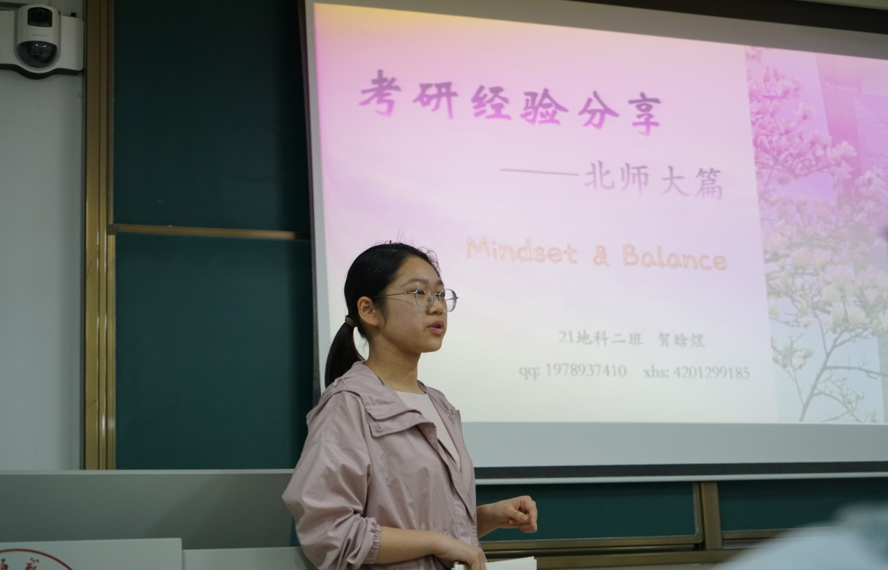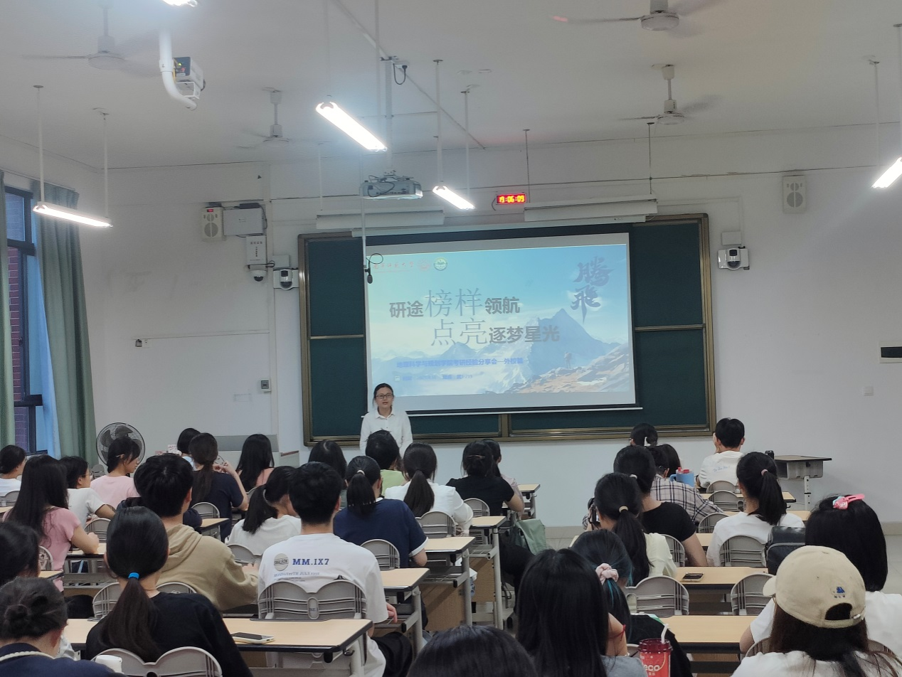交流会上,5名嘉宾毫无保留地分享了自己的考研心路历程。从考研的初衷到备考的全过程,从各科目的学习方法到学习资源的获取途径,他们细致入微地讲述了如何科学规划时间、高效备考。分析了地理科学专业的考研方向、择校需要考虑的因素等等,还给学弟学妹推荐了一些好用的学习软件。分享的嘉宾一致认为,考研是一场需要耐心与毅力的持久战,难免会遇到各种困难和挫折,心态调整很重要,要学会接纳自己的焦虑,保持积极乐观的心态。他们建议学弟学妹们备考要合理安排休息时间,缓解学习压力,劳逸结合才能提高效率。同时,还要学会与身边的同学、研友互相鼓励、互相支持,共同度过备考的艰难时光。