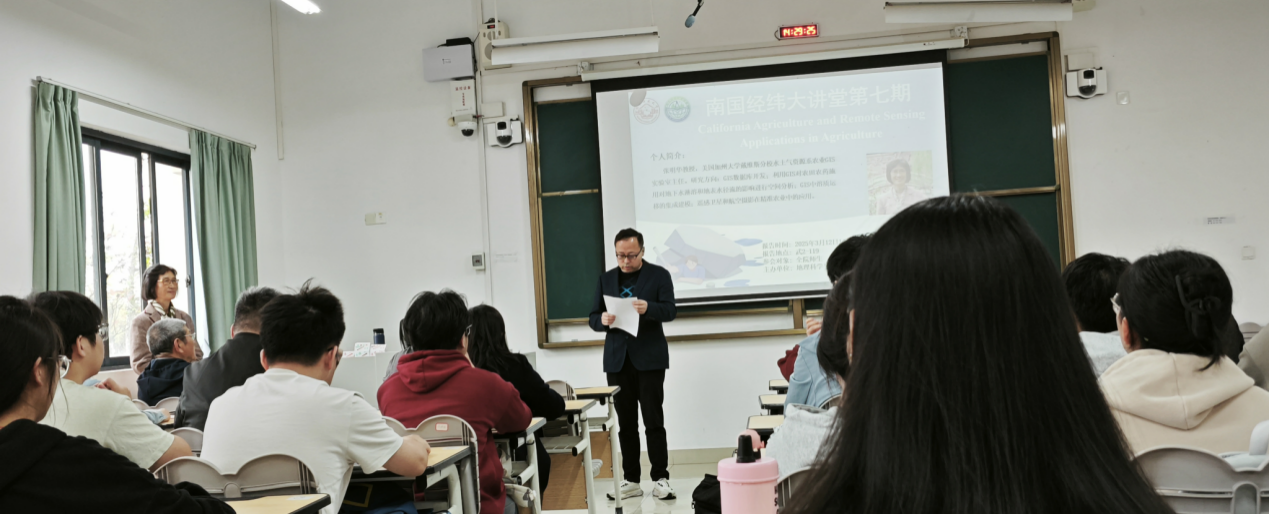2025年3月12日,suncitygroup太阳成集团在武鸣二号教学楼119教室开展南国经纬大讲堂第七期学术分享会。分享会由我院副院长赵银军主持,美国加州大学戴维斯分校水土气资源系农业GIS实验室主任张明华教授应邀担任主讲。