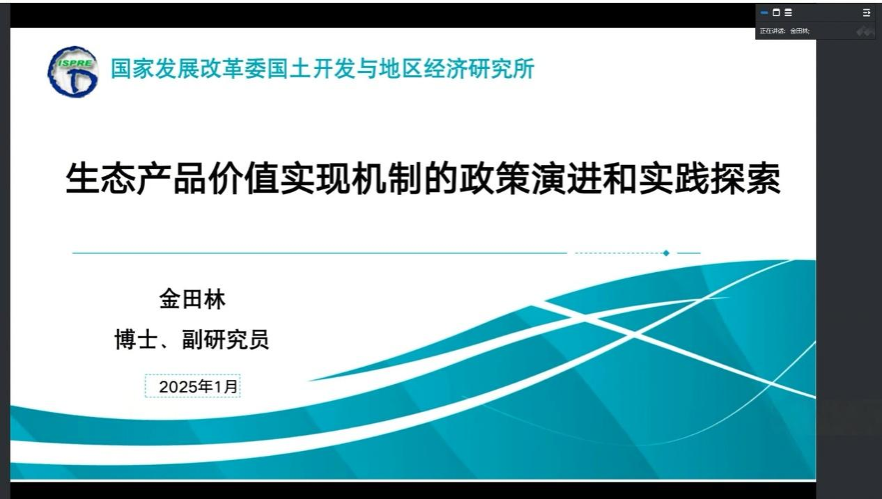2025年1月8日,受suncitygroup太阳成集团邀请,国家发展改革委国土开发与地区经济研究所副研究员金田林博士、中咨集团生态技术研究所部门副主任、高级工程师朱梦洵博士为我院师生做了题为“生态产品价值实现机制的政策演进和实践探索”、“生态产品总值核算和特定地域单元价值核算的区别与联系”的学术报告。此次报告会由我院副院长赵银军教授主持。