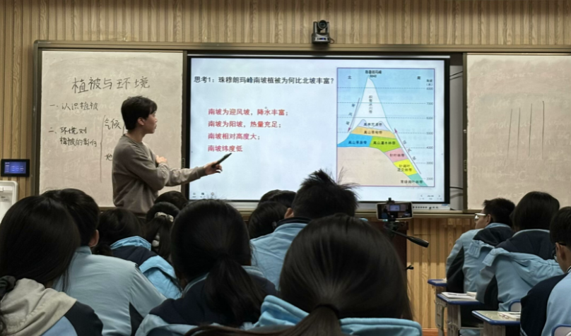 欧阳婷婷:在听完陈科老师和梁小丽老师的公开课之后,我获得了诸多宝贵的教学经验与感悟。陈科老师在高一的《植被与环境- 以塔克拉玛干沙漠为例》中,逻辑环环相扣。从基础知识的植被分类铺垫开始,逐步深入到植被和自然环境相互关系的探究。通过“植被”和“被子”图片展示,犹如一把钥匙,打开了直观教学的大门。在以往的教学中,我虽知道素材运用的重要性,但如何像他这般巧妙使用,并非易事,其课堂上语言诙谐幽默,环环相扣,极大地提高学生的学习兴趣,让学生沉浸在课堂中,这教会我在今后的教学中要精心挑选素材,以生动形象的展示吸引学生;梁小丽老师在高二的公开课上,与学校地理教研组的“地理眼”分享环节相结合,学生们的贡嘎山见闻分享展现出无限的观察力和独特思考。而且梁老师通过对贡嘎山实例剖析垂直分异规律,从具体现象到抽象规律的引导,给我明确的示范。在教学观念和方法上,她积极做出转变。由“牵引式”向“启发式”转变,充分尊重学生的主体地位,引发学生思考,这种互动式的教学让知识的传递更加自然有效。她还倡导“合作探索式”教学,在小组合作中让学生发挥积极性,共同进步。这两位老师的教学方法各具特色,为我们的教学实践提供了丰富的参考和借鉴范例。