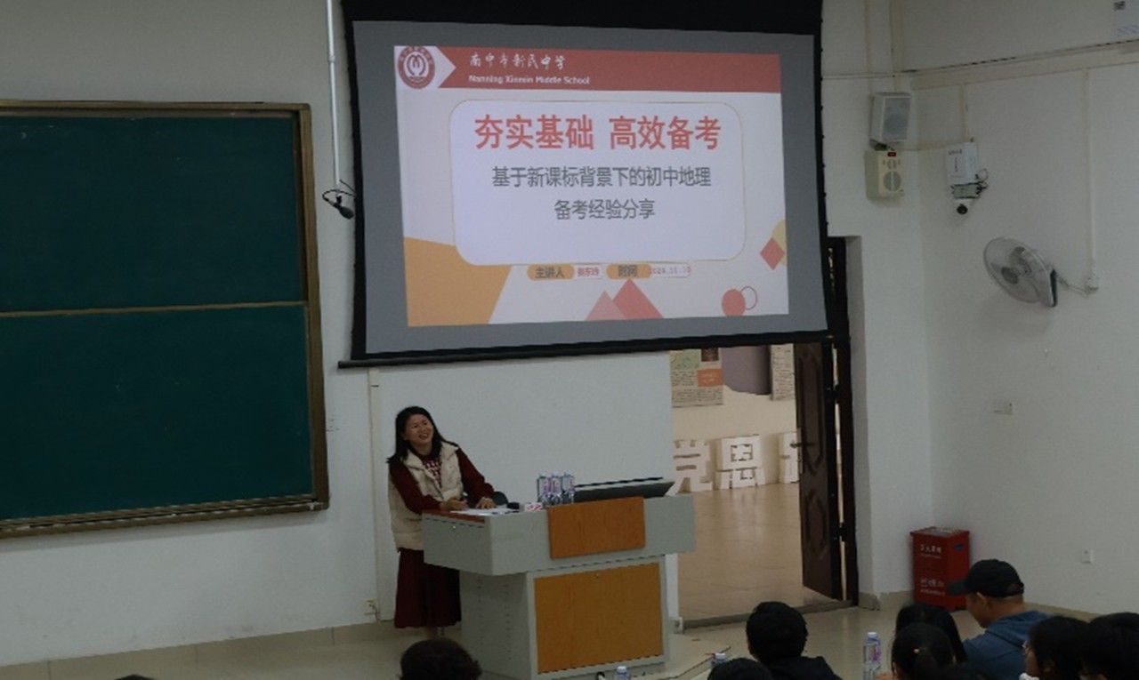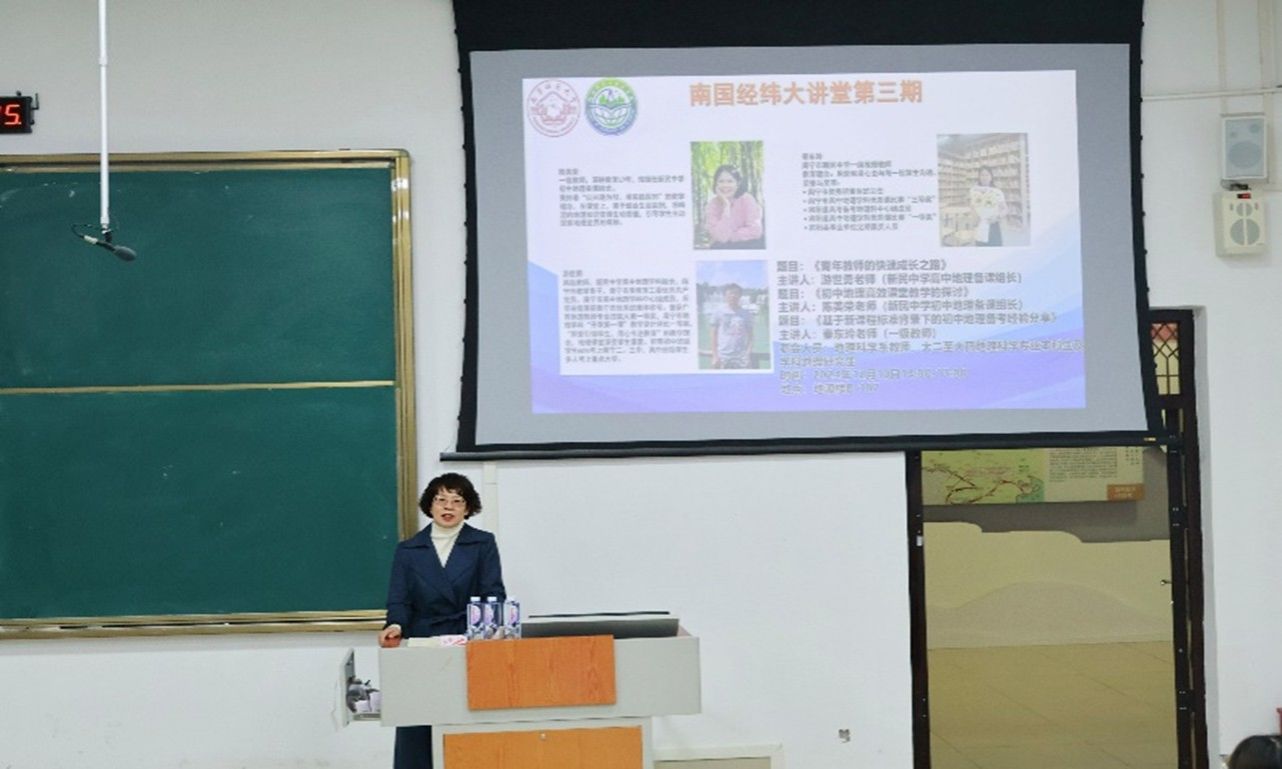 2024年12月10日,suncitygroup太阳成集团邀请了南宁市新民中学初中地理备课组长陈美荣、一级教师秦东玲、高中地理备课组长游世勇老师在武鸣校区地源楼B-107教室开展了“初中地理高效课堂教学的探究”、“基于新课程标准背景下的初中地理备考经验分享”与“青年教师的快速成长之路”的报告讲座。此次报告会由地理科学系主任宋立全和副主任韦晨策划、宋立全主持,地理科学系教师、大二至大四地理科学专业本科生及学科地理硕士研究生参会。