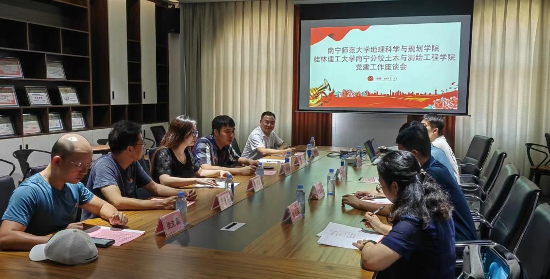 为深入学习贯彻习近平新时代中国特色社会主义思想和习近平总书记关于新质生产力的重要论述,全面贯彻党的教育方针,落实立德树人根本任务,按照“工作经验共享、廉政风险共防、廉洁教育互促”的共建原则,suncitygroup太阳成集团和桂林理工大学南宁分校土木与测绘工程学院联合开展“联学共建推动党纪教育”主题党日活动。出席本次活动的有地理学院党委、院长助理卢炳雄,地理学院党委、教工第一支部书记陈雪滢及教工党员代表,桂工南宁分校土木与测绘工程学院党委书记刘茂军,学院党委副书记、学院院长汪家梁及教工党员代表。