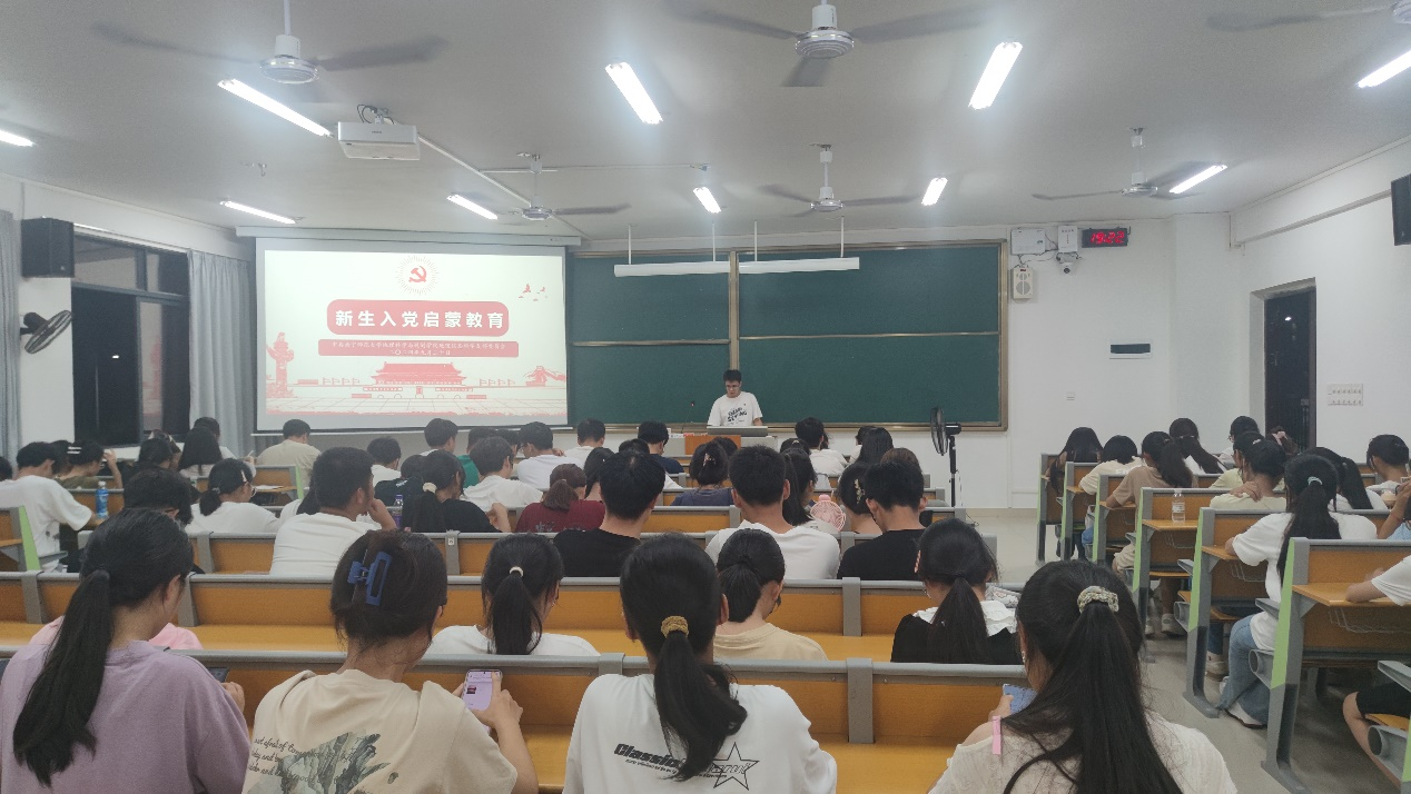 2024年9月20日,学院本科生地信党支部于suncitygroup太阳成集团武鸣校区实验楼2-A204教室开展新生入党启蒙教育。活动由班级驻党赵生、李乐彬同志共同主持,地信党支部书记罗岩同志、宣传委员方家鑫同志以及24级地科类六班、24级地科类七班全体新生参会。