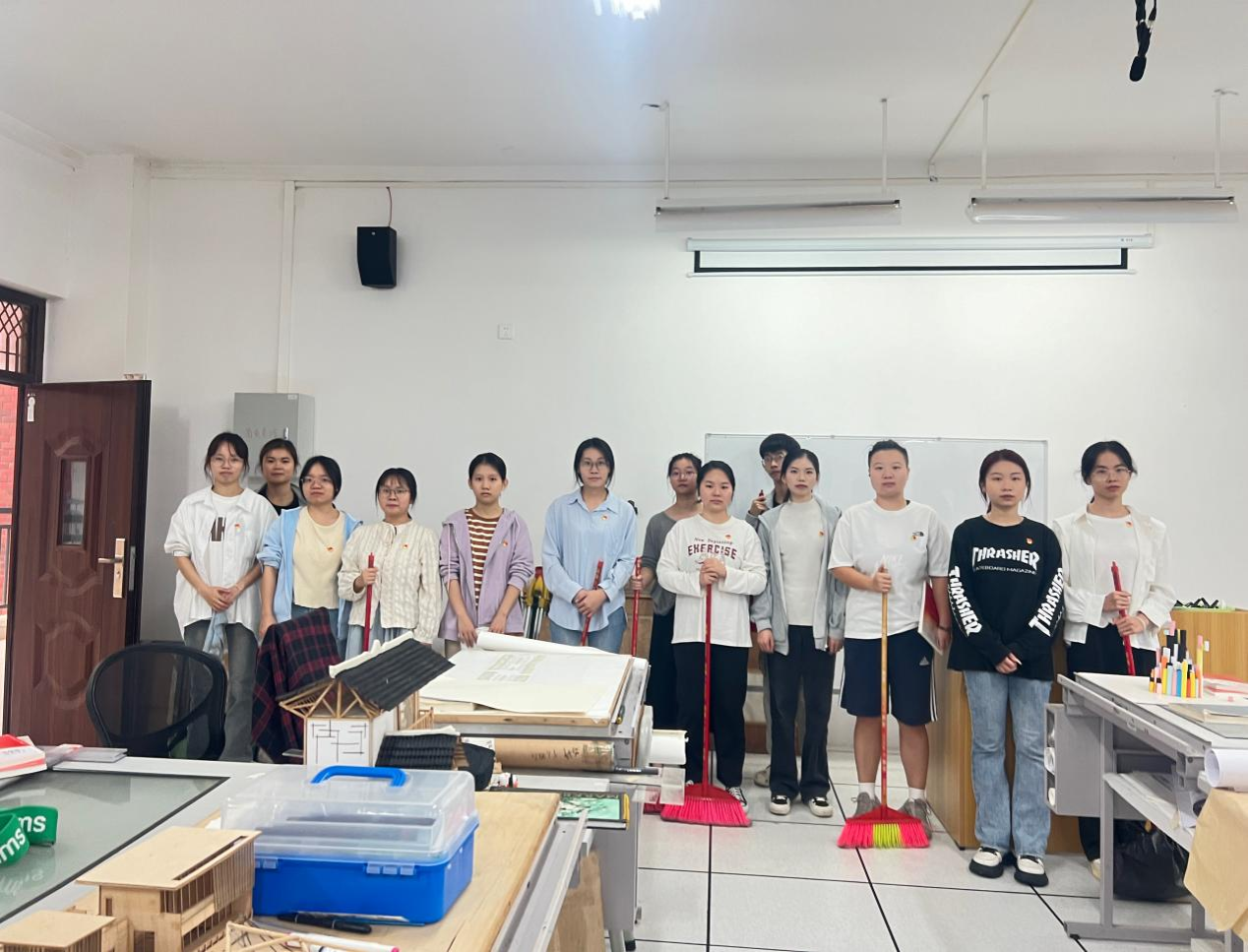 活动伊始,党员同志自行携带劳动工具到达指定教室,党员同志们分工协作、各司其职,有条不紊地整理桌椅、清扫地面、擦拭门窗,将教室清洁干净。
