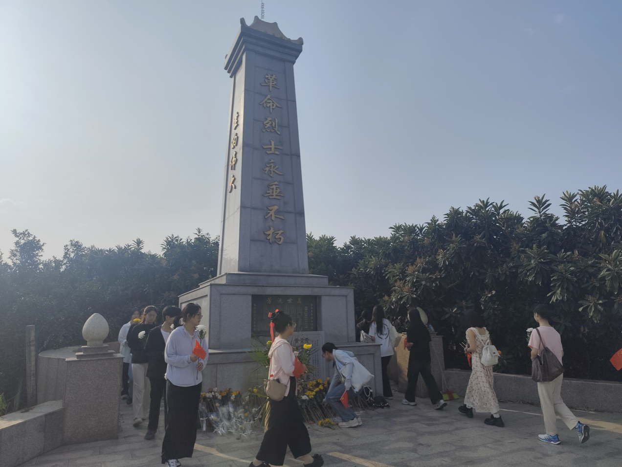 (各位同志在向纪念碑敬献鲜花)