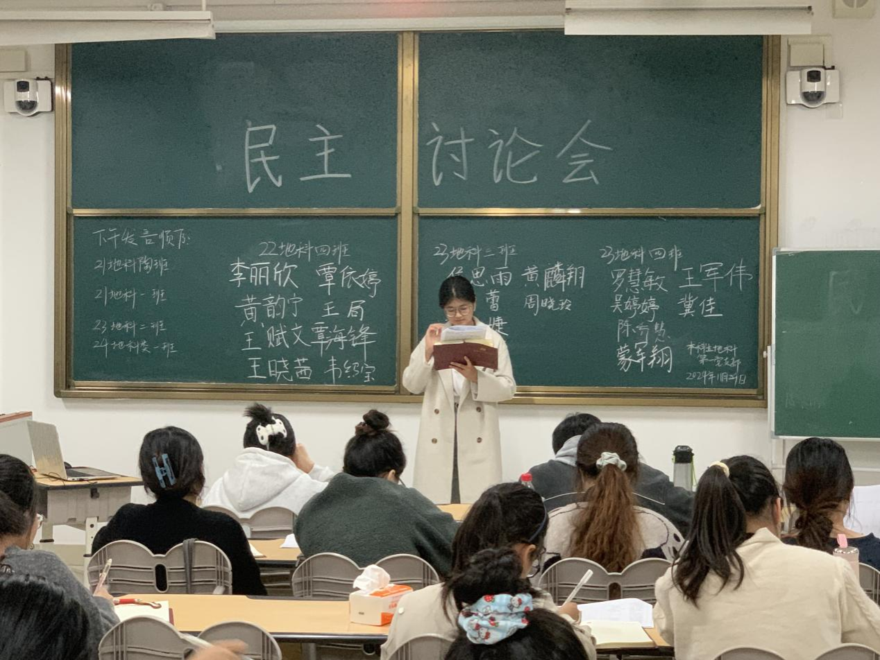 2024年11月29日,suncitygroup太阳成集团本科生地科第一党支部在武鸣校区2号教学楼317教室召开了民主讨论会。会议由支部组织委员邓灿同志主持,全体党员共同参与。