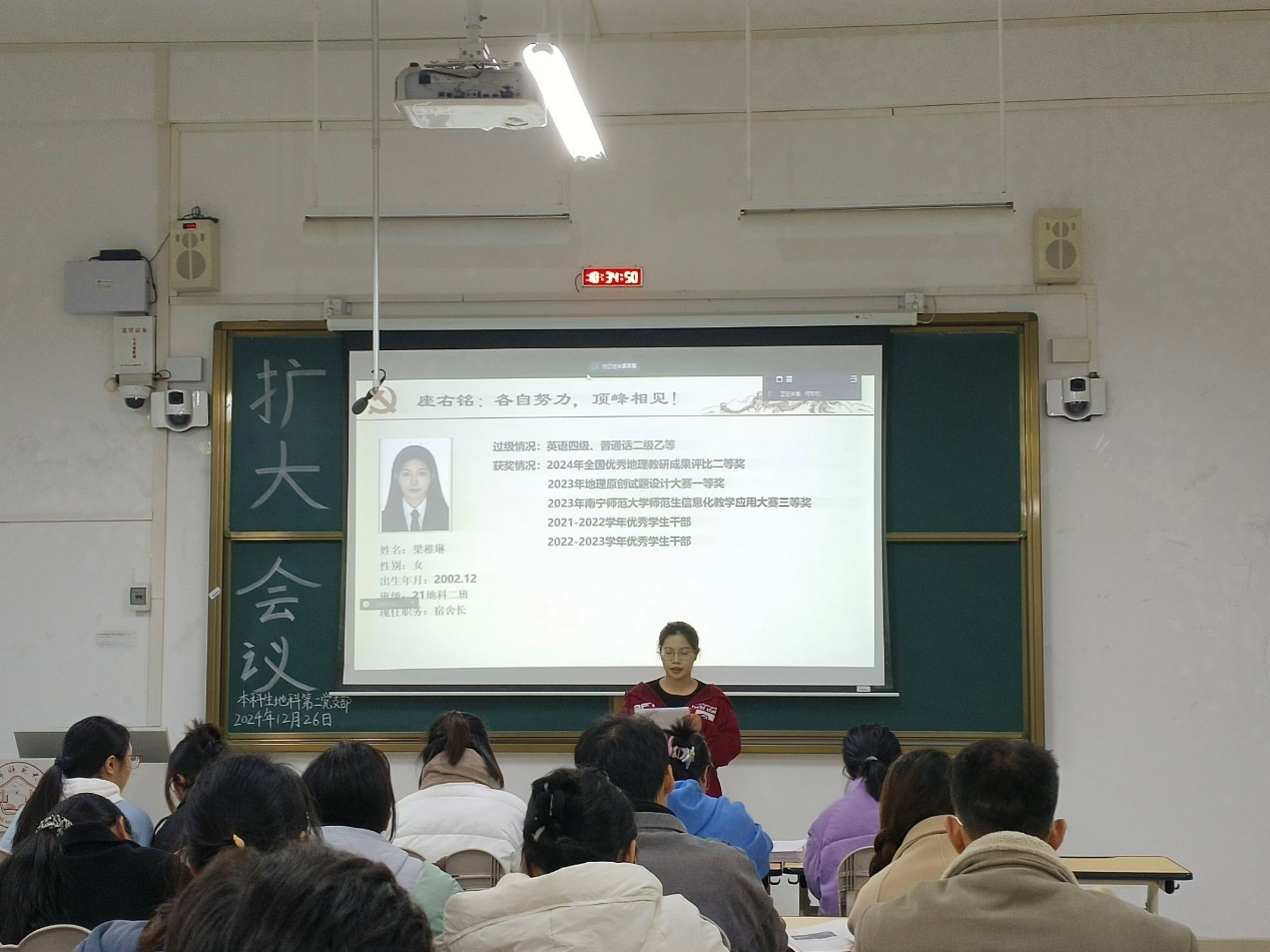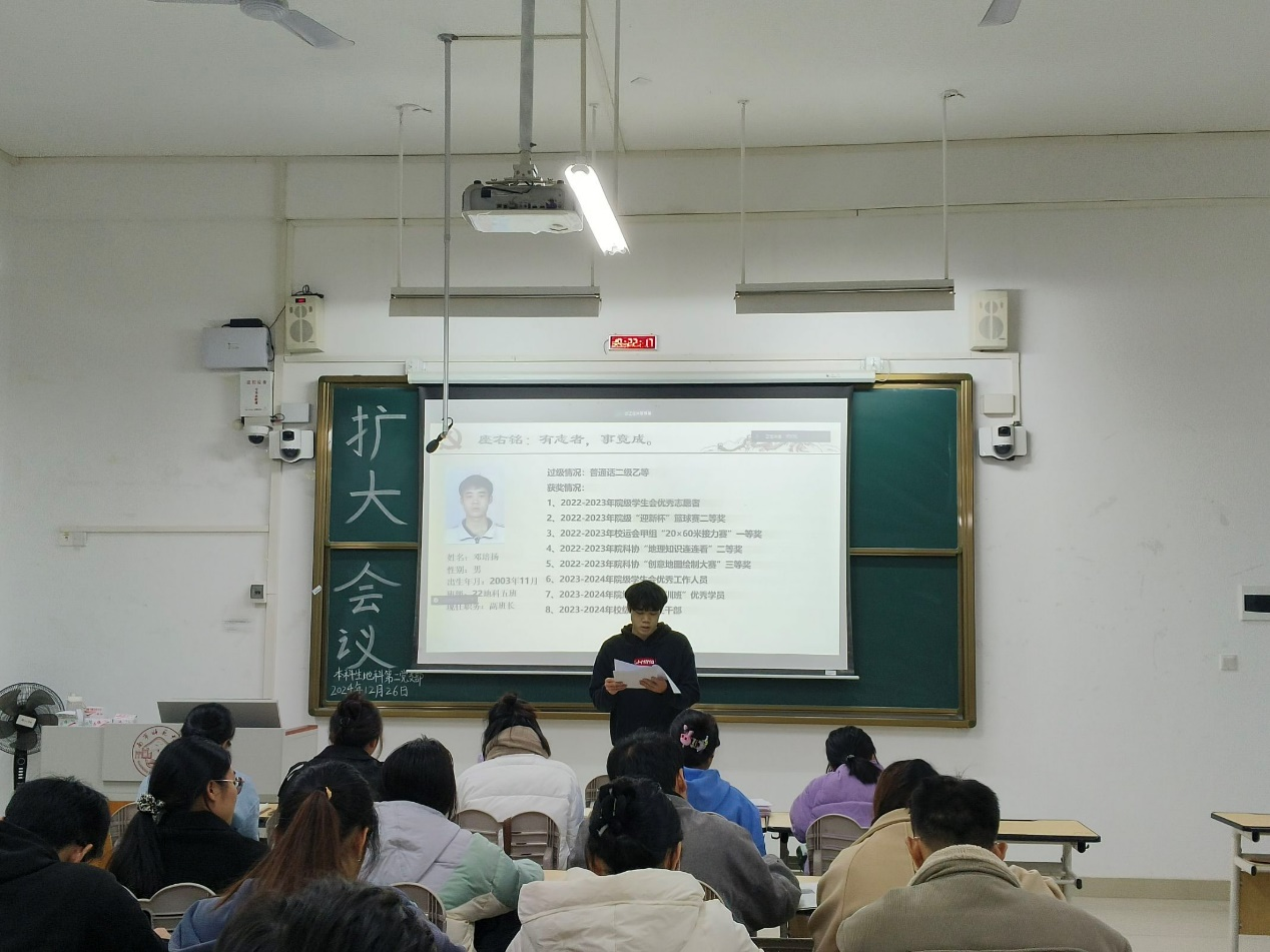2024年12月26日,suncitygroup太阳成集团本科生地科第二党支部在武鸣校区1号教学楼120教室召开2024下半年扩大会议。本次会议由支部组织委员黄小同志主持,支部全体成员参会。