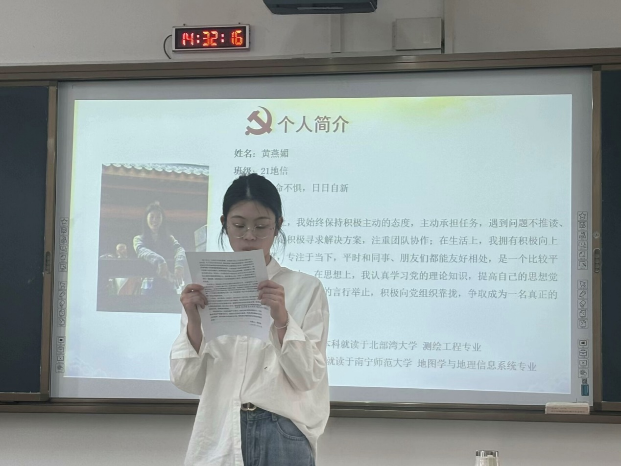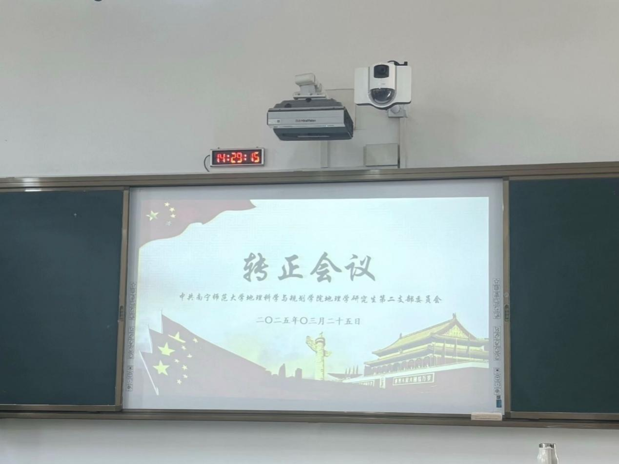 2025年3月25日下午,suncitygroup太阳成集团地理学研究生第二党支部于武鸣校区1号教学楼203教室召开党员转正会议。会议由党支部书记龙璐瑶同志主持,支部全体党员参会。