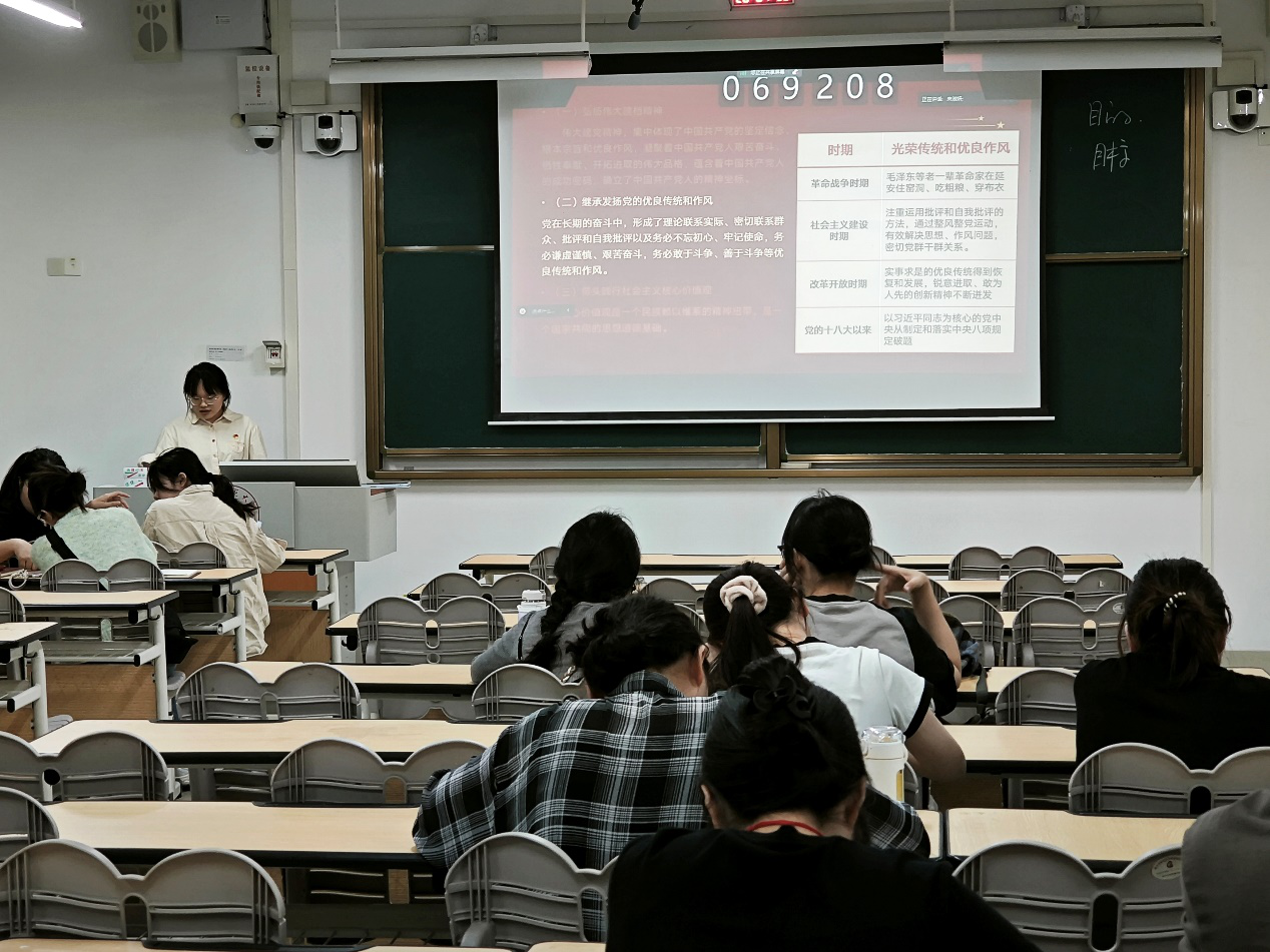 本次学习活动以党的二十大精神学习贯彻主线,聚焦“四个合格”标准展开深度学习研讨。在“讲政治、有信念,做到政治合格”板块,支部成员们深入领悟“坚定理想信念是共产党人安身立命之本”,从“坚持人民至上”的百年奋斗经验中汲取力量,结合方志敏《可爱的中国》手稿,感悟共产党人对人民的赤子情怀与政治方向的坚守。接着“讲规矩、有纪律,做到执行纪律合格”部分,陆艳妮同志通过解读党的组织纪律内涵,强调“执行党的决定、严守政治纪律和政治规矩”的要求,明晰党章对党员义务的规范。随后在“讲道德、有品行,做到品德合格”部分,陆艳妮同志以伟大建党精神为引领,系统阐释井冈山精神、长征精神、延安精神等精神谱系,展现了党的优良传统赓续。最后,“讲奉献、有作为,做到发挥作用合格”的学习中,陆艳妮同志激励青年党员以实干投身新时代党的建设实践,以学科优势服务社会发展。