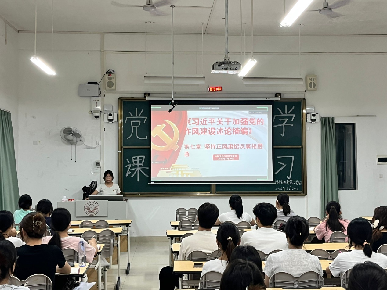 6月20日,suncitygroup太阳成集团本科生地科第二党支部在武鸣校区1号教学楼116教室组织开展“坚持正风肃纪反腐相贯通”专题党课学习。本次党课由党支部书记冼晶晶同志主持,党支部全体党员共同参与。