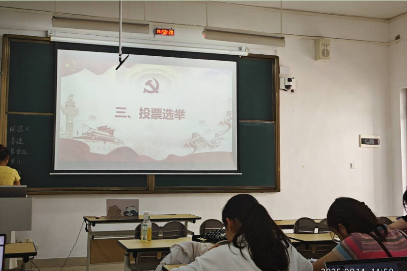 会议围绕党支部换届选举主题,由上一届党支部书记沈子晴同志代表支部委员会作工作报告,全面回顾了过去一年党支部在思想政治建设、组织生活开展、党员教育管理等方面的工作。全体党员审议并通过了工作报告,会议按照换届选举程序宣读了上级党组织关于党支部换届选举的批复文件,介绍了新一届党支部委员会基本情况,通过了选举办法和监票人、计票人名单,与会党员以无记名投票、差额选举的方式,选举姜婕、曾壹丝、黄小、郑晗、罗琳等同志为新一届党支部委员会委员。