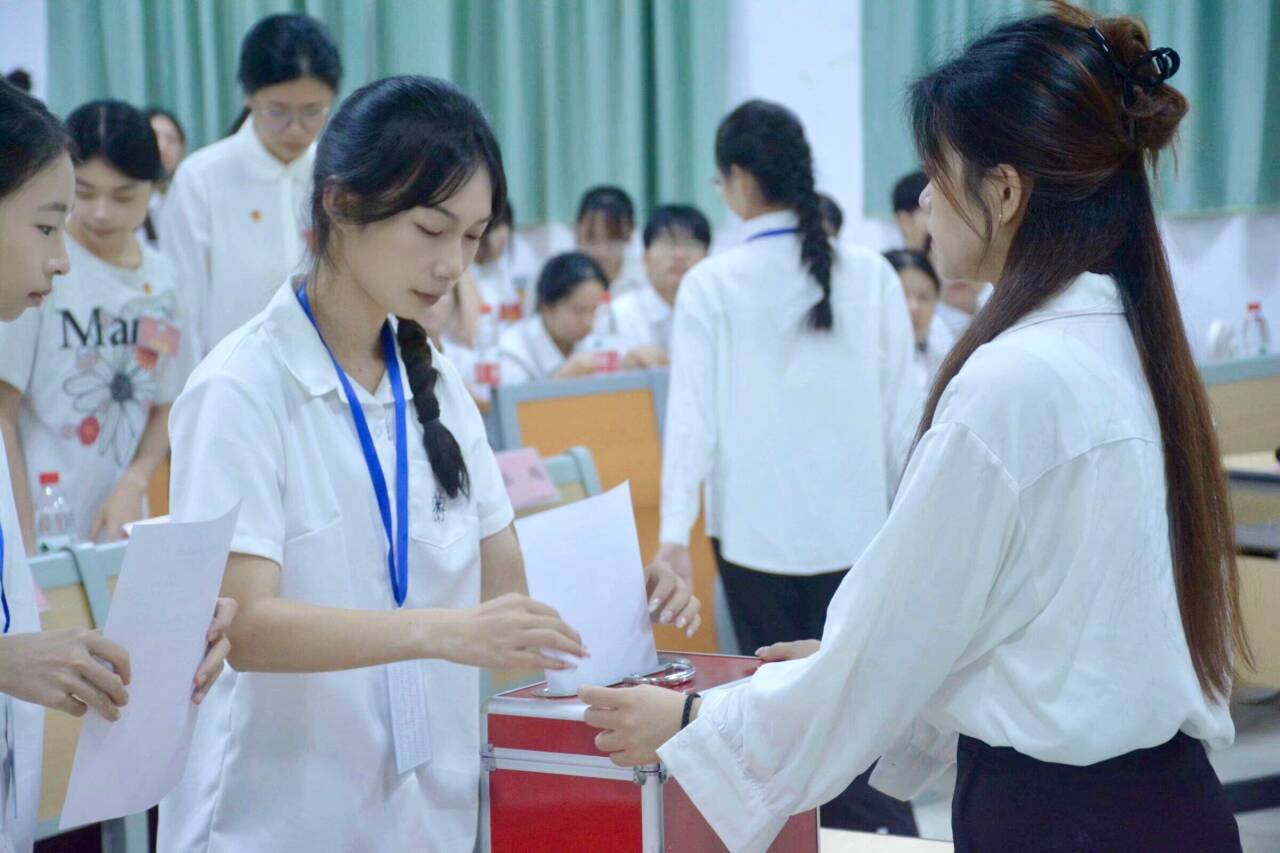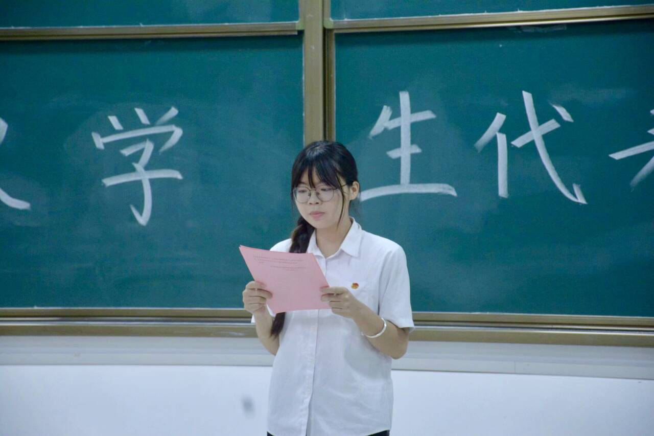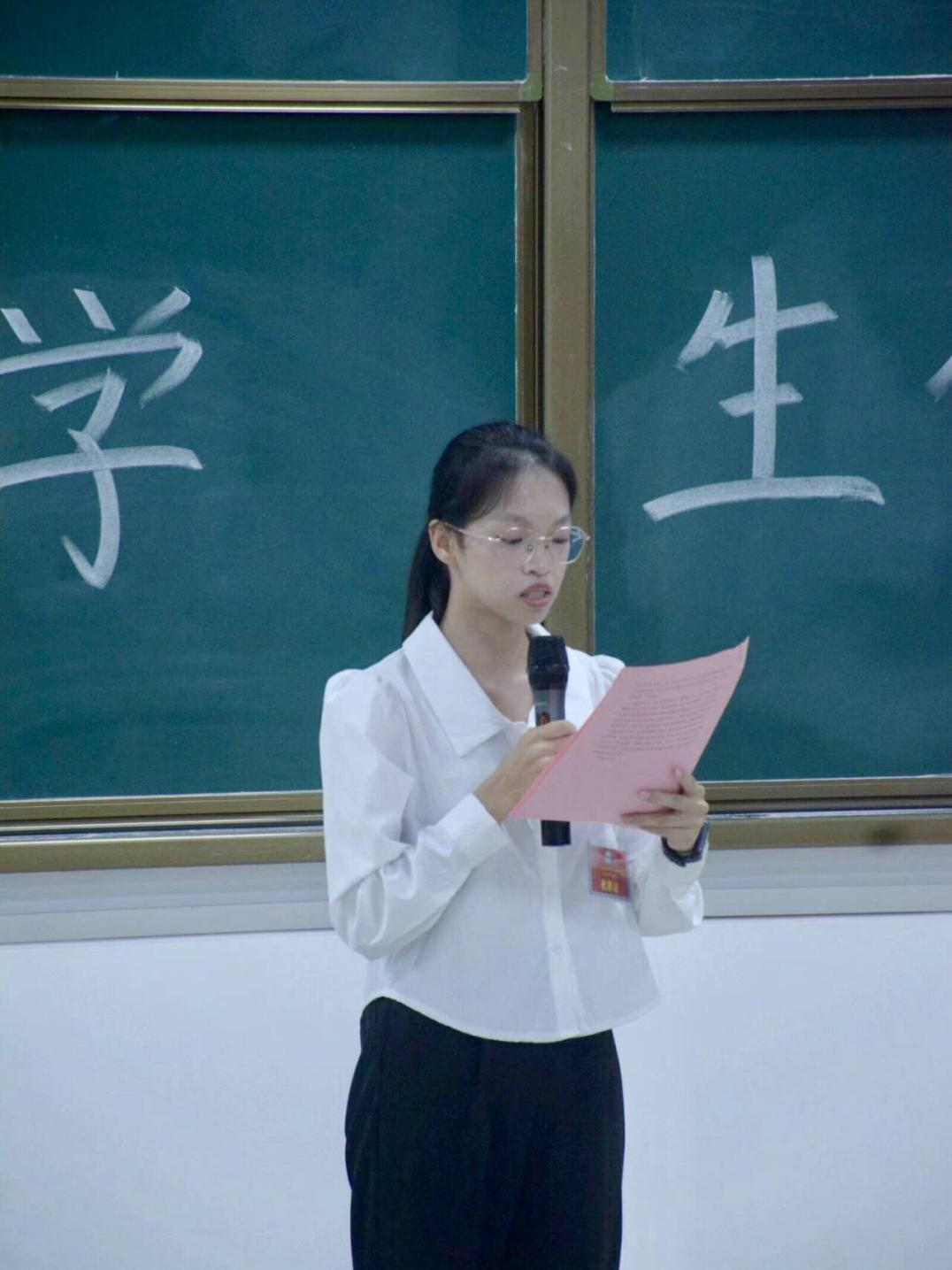 新一届当选学院学生会主席团成员黎丘雨同志宣读大会倡议书,号召全体学生干部要始终深入学习贯彻习近平新时代中国特色社会主义思想,在党的领导、共青团的指导下,秉持“全心全意为同学服务”的宗旨,践行“德才并育,知行合一”的校训和“明德至善 格物致知”的院训,把青春奋斗融入时代洪流,在推进强国建设、民族复兴伟业中展现新时代青年的担当。
