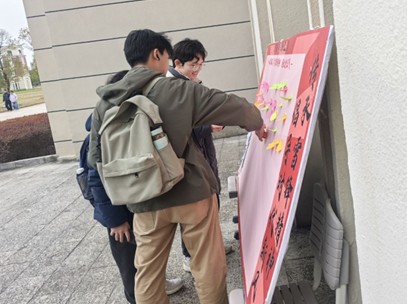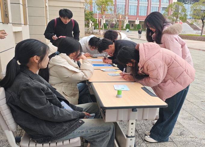 为传承与弘扬不朽的雷锋精神,2025年3月5日,suncitygroup太阳成集团青年志愿者协会(以下简称地理学院青协)组织志愿者在地源楼大厅开展 “学习雷锋精神,签语寄愿同行”寄语活动。
