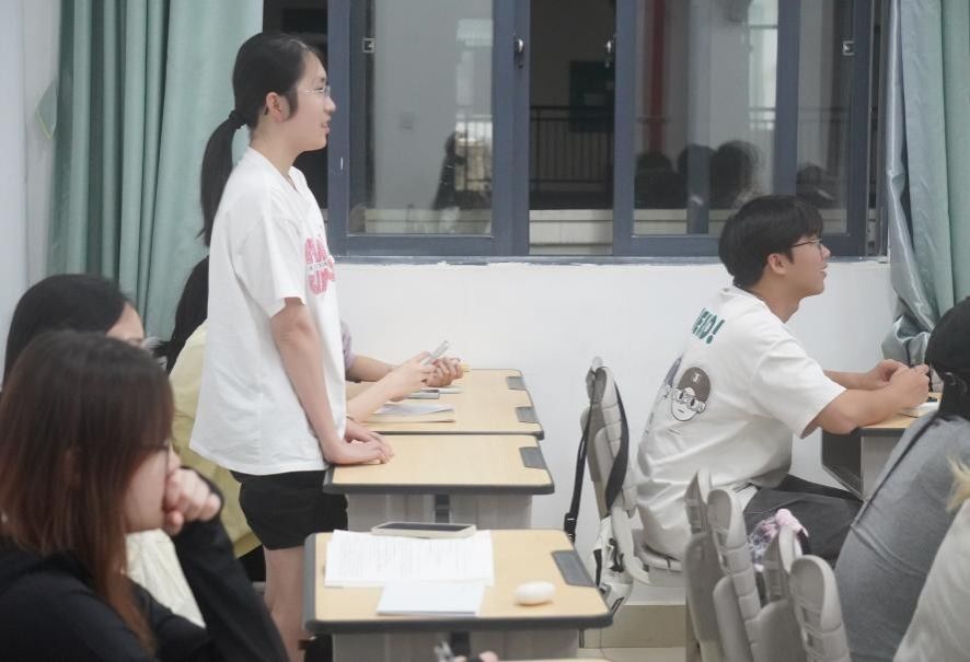 在答疑环节中,24级同学围绕专业学习、科研方向、实习就业等核心话题频频举手提问。各高年级学生代表对24级同学所面临的困惑问题进行解答。