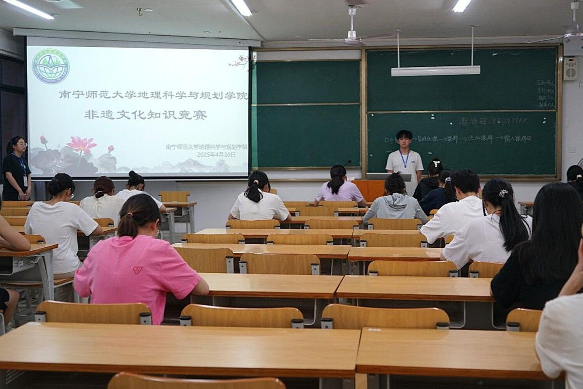 为弘扬中华优秀传统文化,深化学生对非物质文化遗产(以下简称“非遗”)的认识,4月20日,suncitygroup太阳成集团在武鸣校区2号实验楼C301、C302教室举办了“非遗文化”知识竞赛。此次竞赛为院级选拔赛,参赛对象为地理学院全体同学。